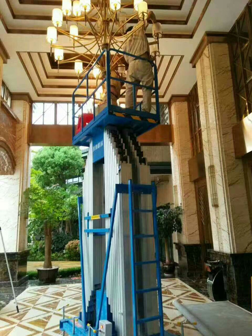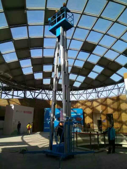 鋁合金升降機系列產品為多為室內型,廣泛適用于星級酒店,大型超市等各行業大廳、廠房內的高空作業,具有升降平衡,操作方便,能進入一般門廳,可隨意進出電梯且耗電少、無污染、工作時不傷地面,可用于貼墻工作及探出作業,工作無死角。鋁合金式液壓升降平臺產品采用鋁合金材料,動力經過液壓泵站帶動鏈條傳動,結構合理設計緊湊。鋁合金升降作業平臺根據升高高度分為單柱、雙住、三柱和四柱式,具有造型美觀、體積小、重量輕、升降平穩等優點,并能夠上下操作,升降平臺廣泛用于酒店賓館、車站候車室、機場候機樓、影劇院、展覽館、體育館等場所,是保養機具、油漆裝修、調換燈具、電器、清潔保養等用途的伴侶。